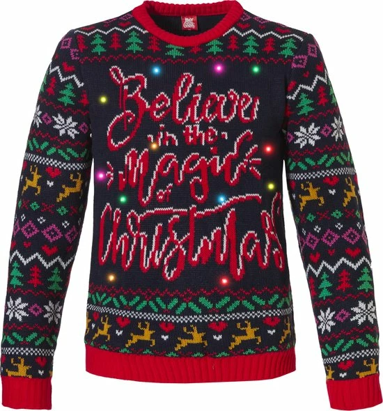 Het kerstfeest kan beginnen met deze gebreide dames kersttrui () met feestelijke ledverlichting. Deze foute kersttrui is voorzien van een vrolijk dessin in een echt kerstthema. De lange mouwen en ronde hals maken deze trui heerlijk comfortabel en lekker warm om te dragen.