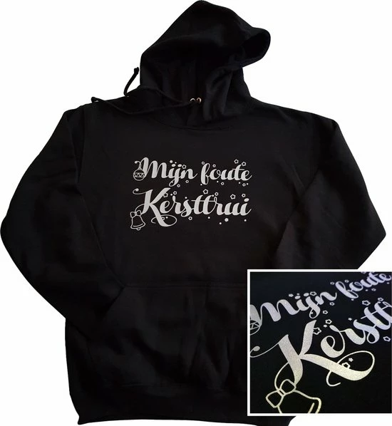Leuk om aan te trekken met kerst of om cadeau te doen is deze hoodie met de tekst “Mijn foute kersttrui”.
