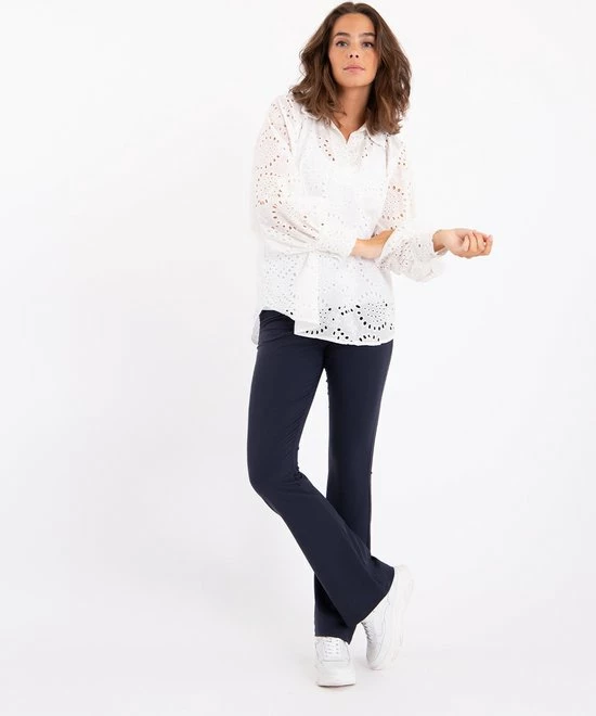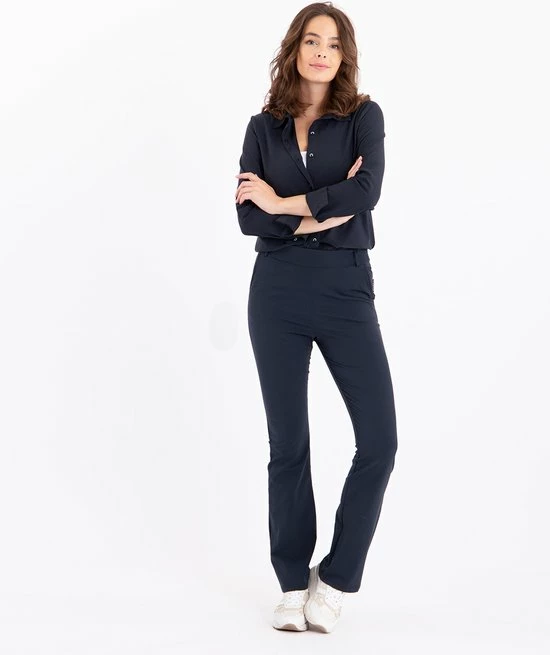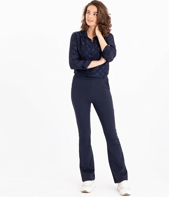 Ben je gek op kleding die fijn draagt, maar ook mooi blijft de hele dag? Dan is deze Travel kwaliteit jouw kwaliteit! Kreukt nauwelijks, veel draagcomfort! Lees hier alles () over Travel kwaliteit.โข Aansluitend op de heupenโข Elastische taillebandโข Broekspijpen lopen uit in charmante flairโข 2 steekzakken aan de voorzijdeโข 2 opgestikte zakken aan de achterkantโข Riemlusjes