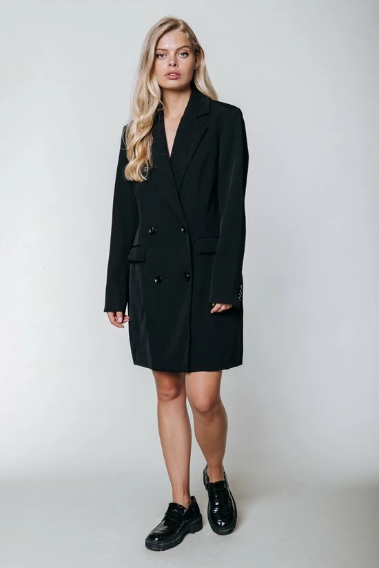 Blazer kraag jurkBasic fitKorte lengteLange mouwKnoopsluiting95% polyester, 5% elastane, WovenStretch stofWash by hand/ No tumble dry/ Flat dry/ Do not wring/ No bleach / Do not ironModel is 1.70m en draagt S