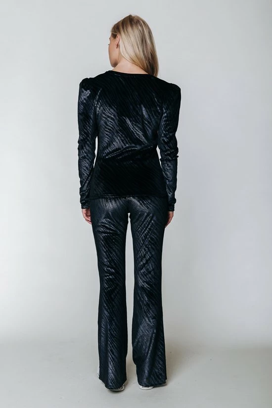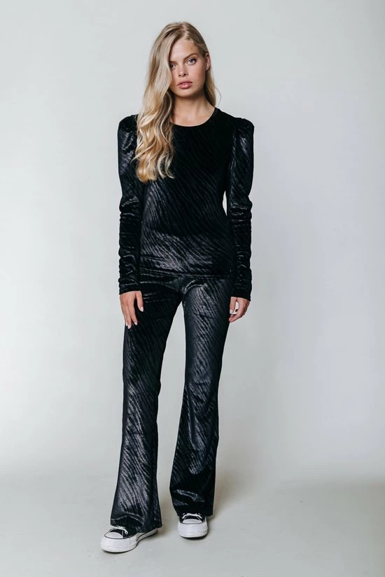 Flare broekVan strak naar uitlopende pijpNormale tailleNormale lengte95% polyester, 5% elastane, VelvetStretch stofWash by hand/ No tumble dry/ Line dry/ Do not wring/ No bleach / Do not ironModel is 1.70m en draagt XS