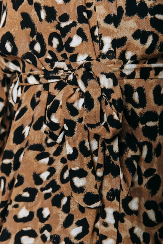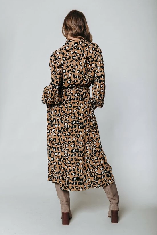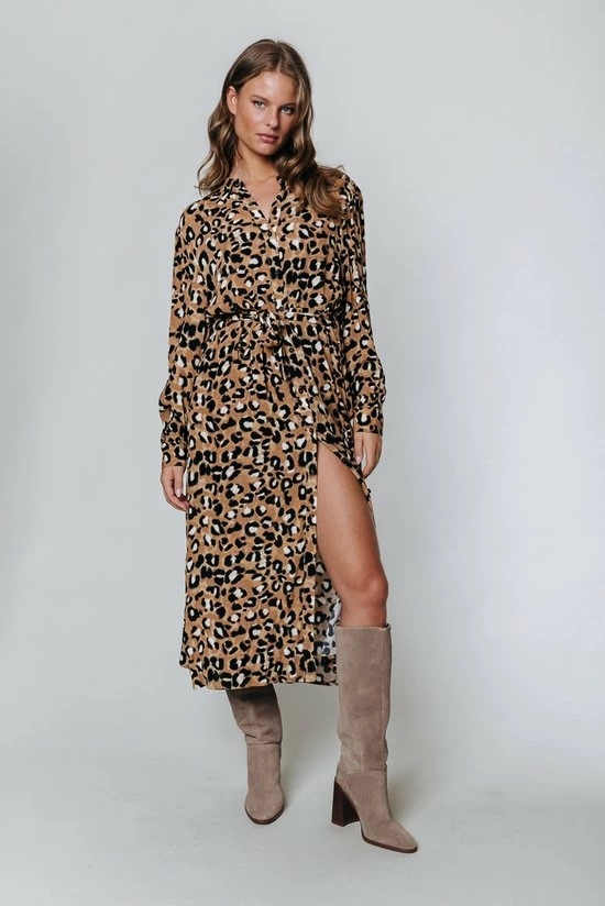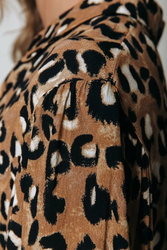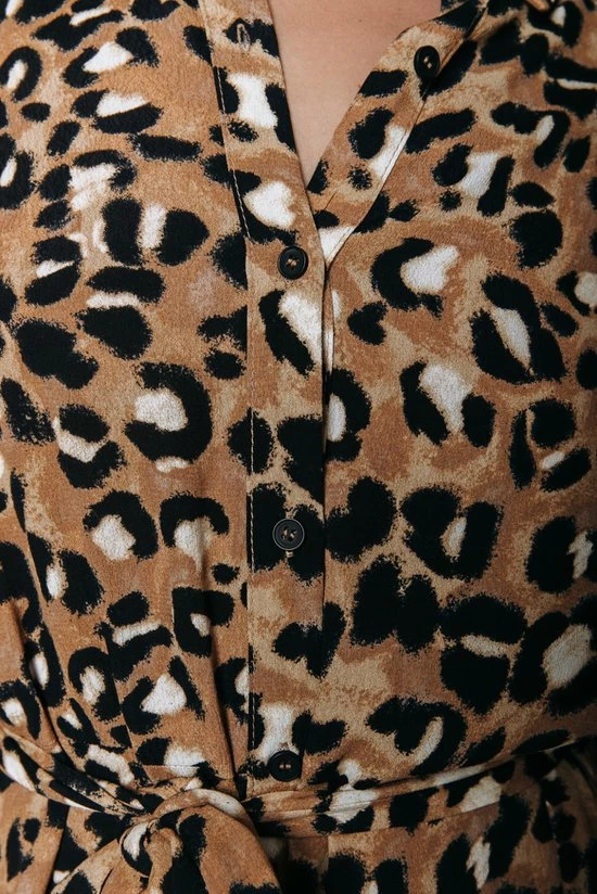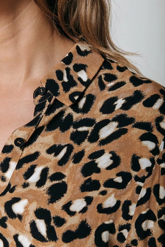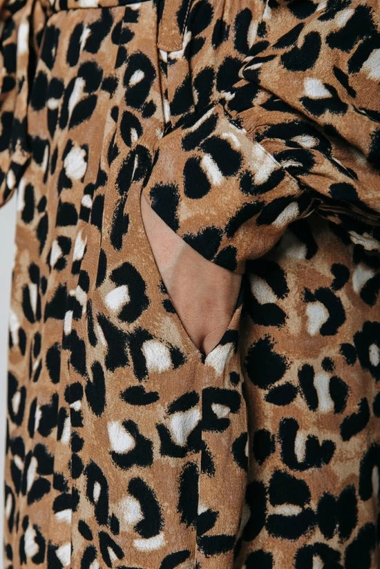 Blouse jurkBasic fitMidi lengteLange mouwKnoopsluitingLeopard dessin100% viscose, CrepeNon stretch stofAlleen handwasModel is 1.70m en draagt S