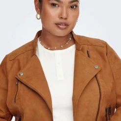 Promo 🎁 Only Carmakoma Caravana Faux Leather Biker Otw Leather Brown 👏