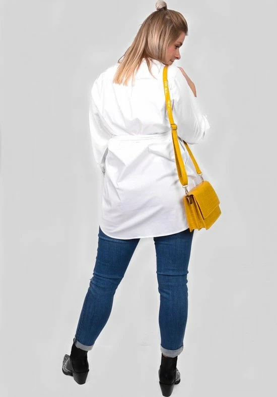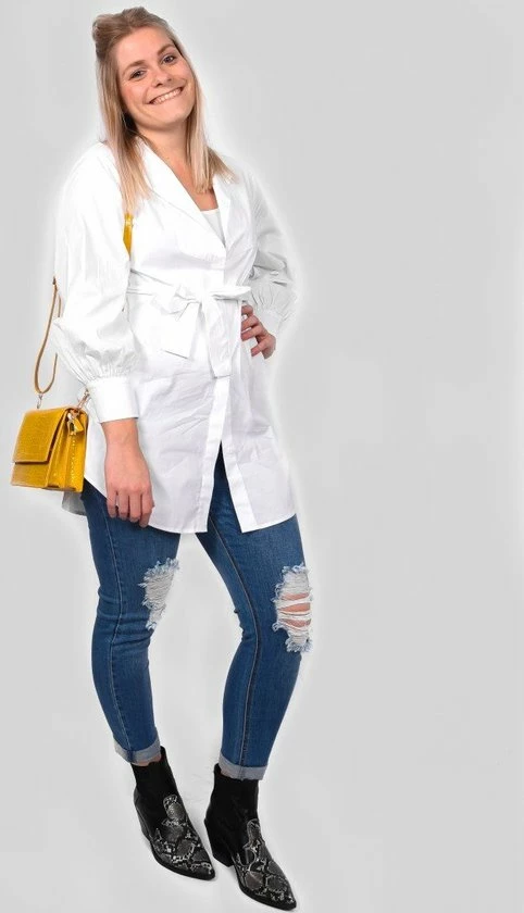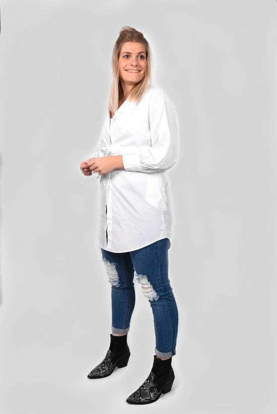 Netjes voor de dag komen? Dat doe je met de Iris blouse. Deze lange blouse is ideaal voor op een broek, rok op legging en wordt gekenmerkt door de diepe V-hals en de grote zakken. Maak het af met het bijpassende ceintuur. Ook super leuk in combinatie met een spencer.