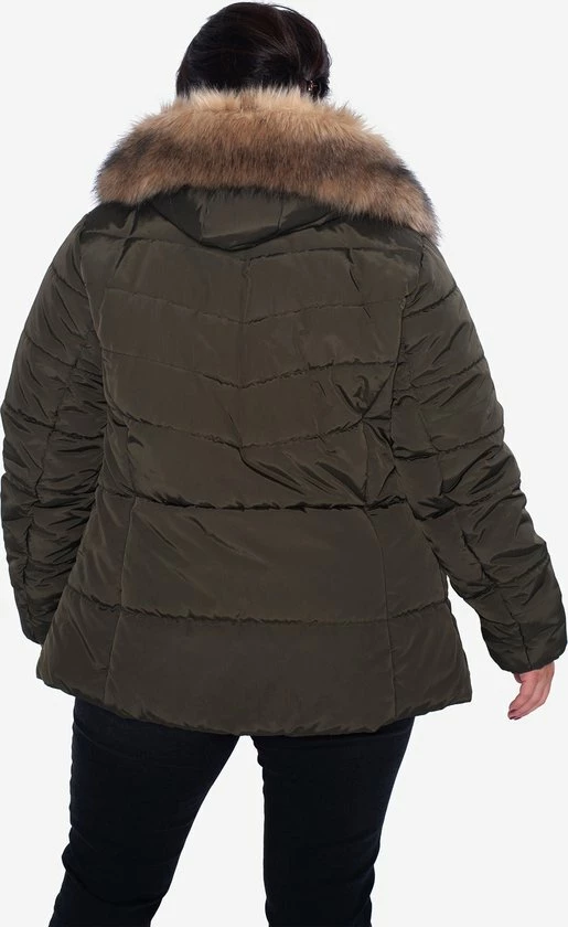 Uitgang π₯ EVIVA – Pufferjas Met Kap En Faux Fur – Khaki Groen π€©