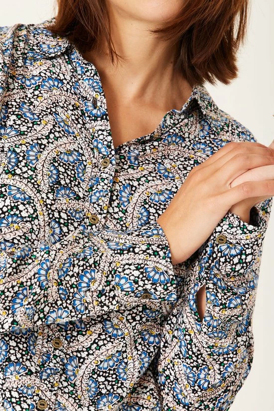 Blouse met allover print. Deze blouse heeft een klassieke kraag, een knoopsluiting en een regular fit. Dit item is gemaakt van 100% viscose.
