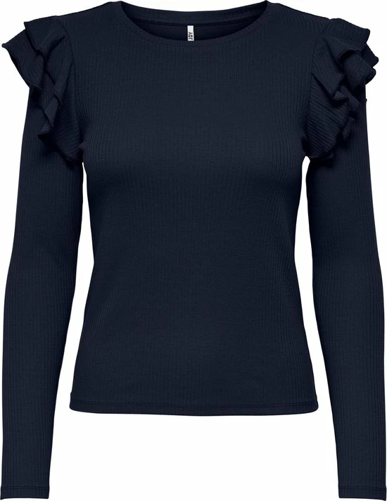 Nieuw 𧨠Jacqueline De Yong T-shirt Jdymille L/s Frill Top Jrs 15270900 Sky Captain Dames Maat – S β€οΈ