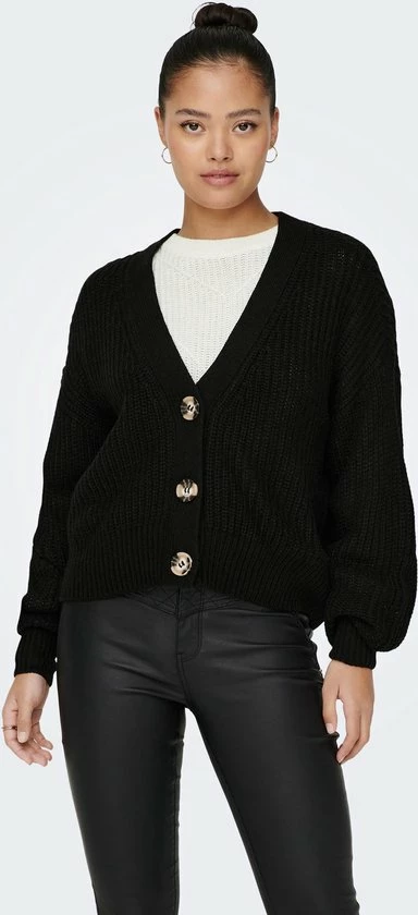 JDY knit met knoopsluiting – V-hals – Lange mouwen – Geribde boorden – Open breisel – Knoopsluiting