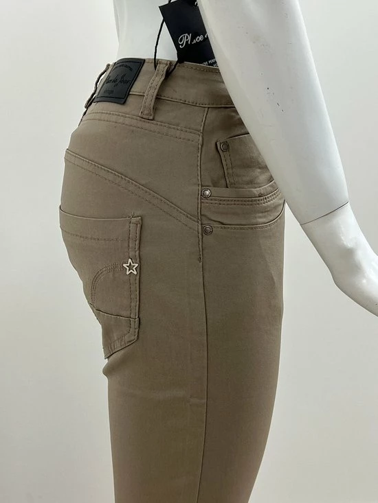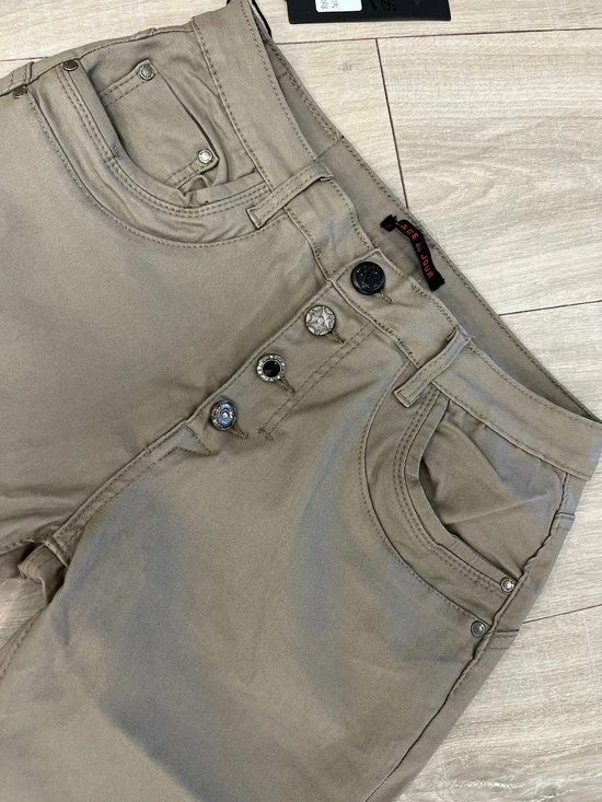 Hele mooie kaki eather look stretch jeans met leuke unieke knopen.
