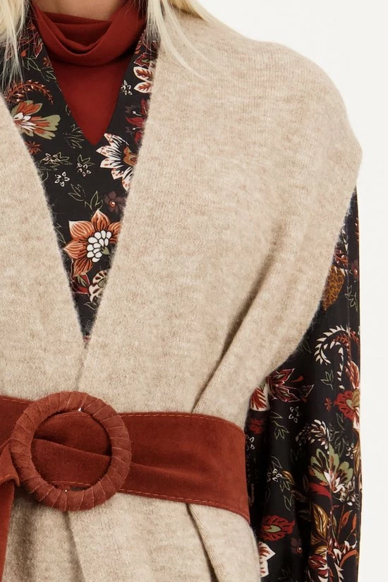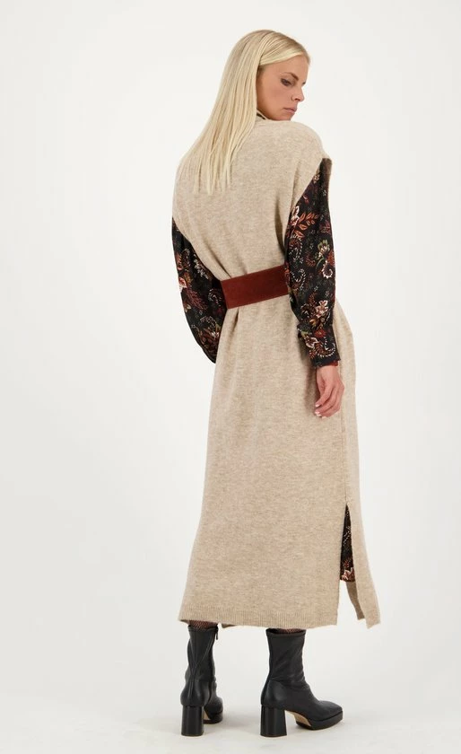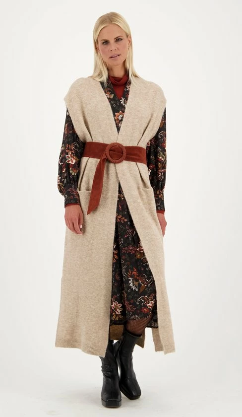 Ga voor een look met deze lange beige cardigan van Louise. Een elegante, lange vest die je silhouet verlengt en versmalt? Die mag niet ontbreken in je garderobe. Afgewerkt met een split aan de zijkanten en twee zakken.