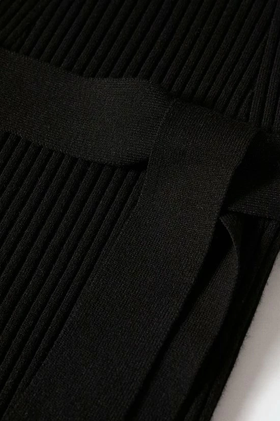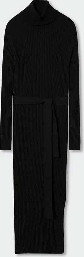Slim fit jurk van Mango met een ribpatroon. Dit model heeft een colkraag en lange raglan mouwen. Rond de taille is een strikkoord geplaatst. De totale lengte is 117 cm bij maat S en aan de zijkant is een split geplaatst van 30 cm.