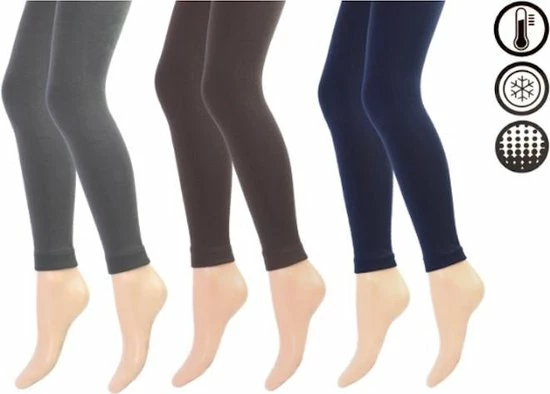 Set van 3 dames thermoleggings in de kleuren antraciet, bruin en marineblauw. Deze set thermo leggings is de ideale basic voor tijdens koude dagen. De dames thermoleggings zijn gemaakt van een warme, zachte en comfortabele stof. De leggings zijn ook sterk, elastisch en drogen snel. Deze voordelige set van 3 dames thermo leggings is verkrijgbaar in de maten S/M (36-40), L/XL(40-44) en XXL(44-48).