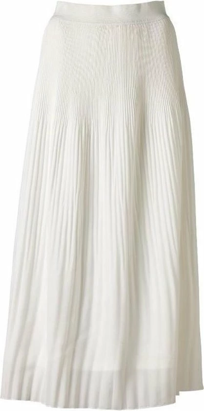 Dames plisse rok in een offwhite kleur, die voorzien is van plooitjes rondom. De rok is gemaakt van 100% polyester. Door de elastieken brede tailleband zit de rok erg comfortabel. De rok is het hele jaar door te dragen en te combineren met zowel shirtjes als truien.
