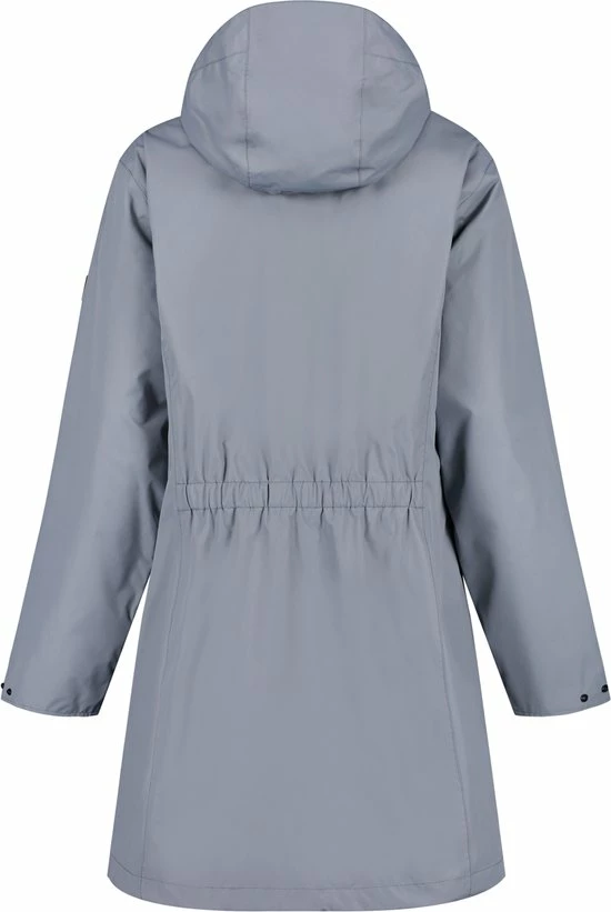 Met deze vlotte regenparka ben je bestand tegen een regenbui. De jas is getapet op de naden en de stof heeft een waterkolom van 3000. Deze parka heeft technische voordelen en past daarnaast uitstekend bij de laatste modetrends. De body voering van katoen zorgt voor comfort en ventilatie. De elastische band aan de achterkant zorgt voor een getailleerde look zonder dat het trekt. Twee fijne, diepe zakken aan weerszijden van de jas zijn af te sluiten door 2 drukknopen. De capuchon is op het hoofd verstelbaar door middel van klittenband en aan weerszijden zitten subtiel verborgen twee pullertjes om de capuchon aan te trekken.