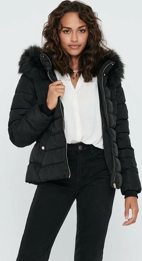 Promo ๐งจ ONLY ONLCAMILLA QUILTED FURHOOD JACKET CC OTW Dames Jas – Maat XS ๐