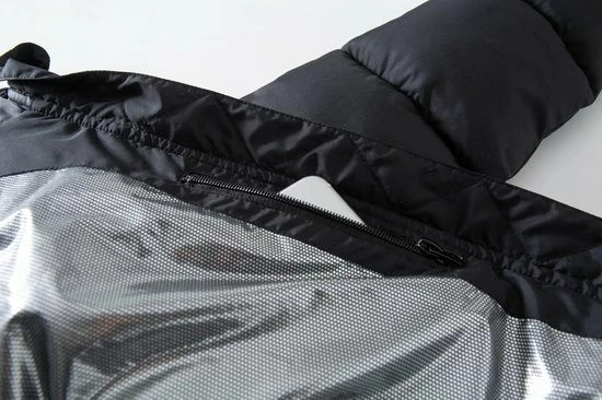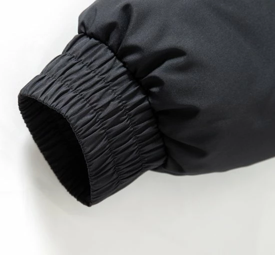 De jas is waterafstotend en winddicht en de uiteinden mouwen zijn voorzien van een gebreide rib boord die de wind buiten houd.