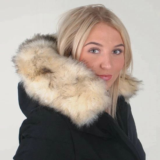 De capuchon heeft afneembare bontkraag van imitatie bont.