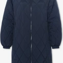 Hete verkoop 🤩 EVIVA – Lange Quilted Pufferjas Met Kap – Donkerblauw ⭐