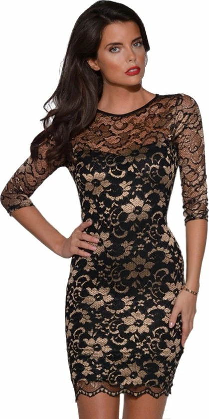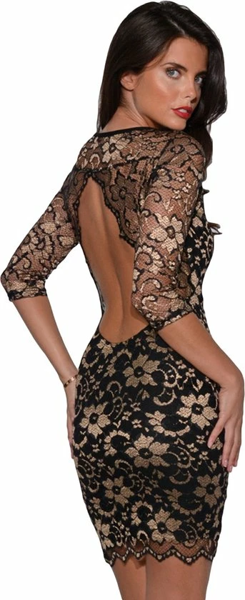Beste Verkoop π Produkt John Zack – Kanten Mini Jurk Zwart En Goud Backless / XXL π