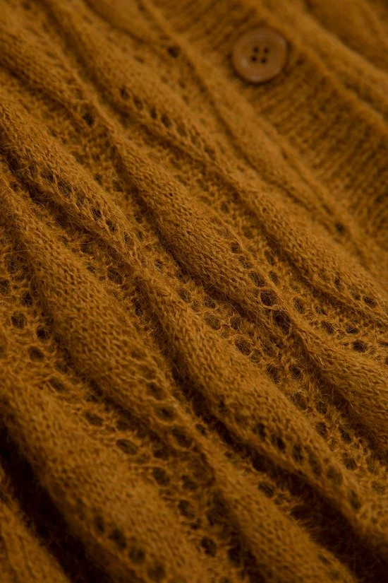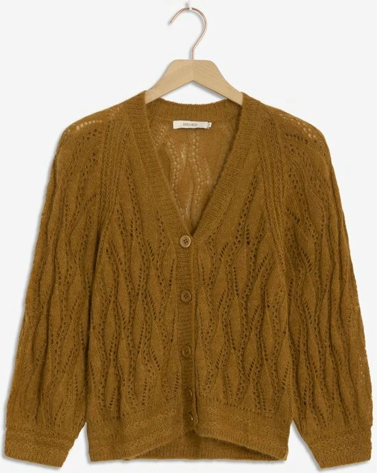 Heerlijk warm de dagen door. Dit bruine gebreide vest is van zachte kwaliteit en voelt daardoor fijn aan op de huid. Het korte model zorgt voor een nonchalante maar toch elegante uitstraling. Het vest is gemaakt van 41% alpaca, 22% wol en 37% nylon.