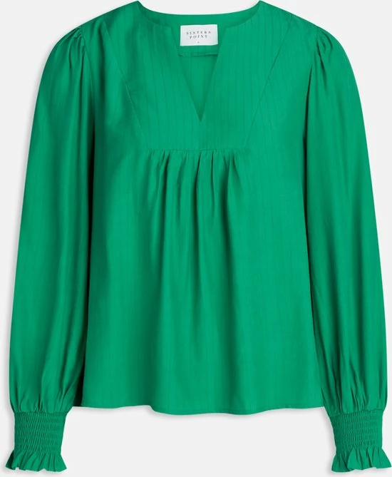Deze mooie blouse uit de Sisters Point collectie mag niet ontbreken in jouw kledingkast! De top heeft lange mouwen en een fijne v-hals en is zeer comfortabel. De top heeft leuke pofmouwen.
