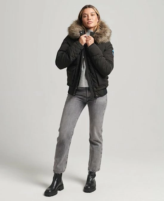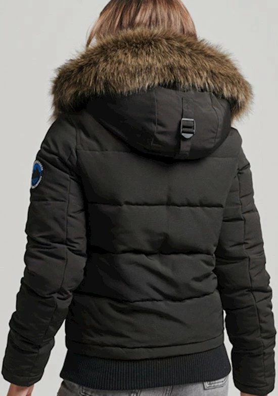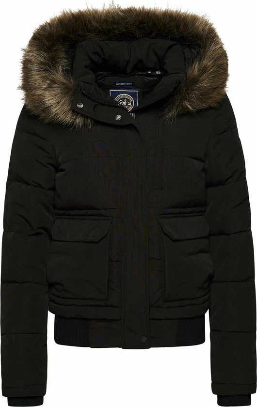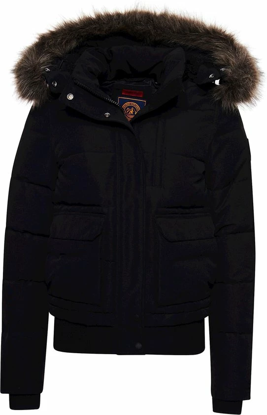 Een bomberjack is een absolute klassieker. Voeg een gewatteerde voering, een met borg gevoerde capuchon en een rand van imitatiebont toe en je krijgt ons onweerstaanbaar behaaglijke Everest-bomberjack met capuchon. Gemaakt om je comfortabel en warm te houden. Pak je in en bescherm jezelf tegen het barre weer, zonder in te leveren op stijl. Slimfit β de nauw aansluitende pasvorm zorgt voor een strakkere look, Verstelbare capuchon met elastisch trekkoord, Een afneembare rand van imitatiebont, Drukknoop- en ritssluiting, Met vijf zakken, Geribde boorden, Binnenzak, Met borg gevoerde capuchon, Iconische opgestikte Superdry-logopatch. De wattering in deze jas is 100% gerecycled. Elke jas bevat tot 30 gerecyclede flessen, waardoor wordt voorkomen dat deze flessen op een vuilnisbelt terechtkomen of onze oceanen vervuilen.