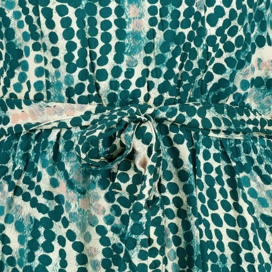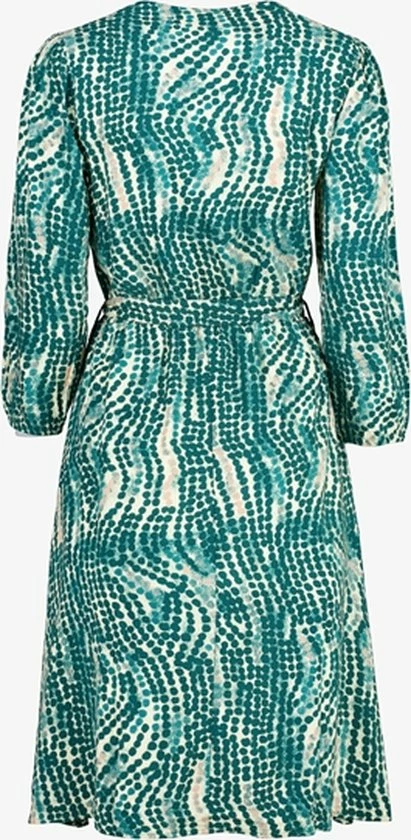 Blauw/groene jurk voor dames uit de TwoDay collectie. Deze maxi jurk heeft een v-hals, lange mouwen met elastiek en een lengte tot over de knie. Bij de jurk zit een ceintuur in dezelfde print als de jurk om zo wat taille aan te brengen. Gemaakt van 100% viscose.