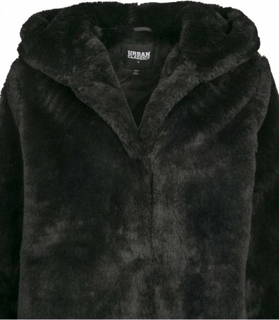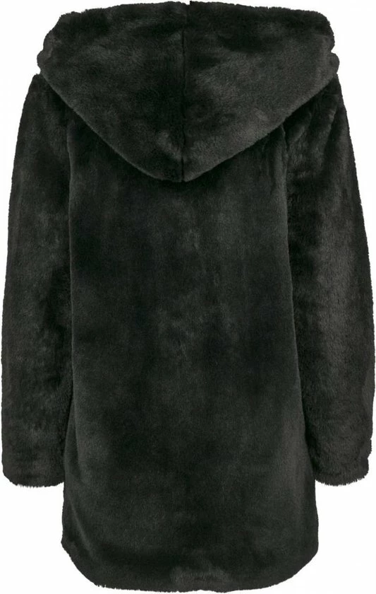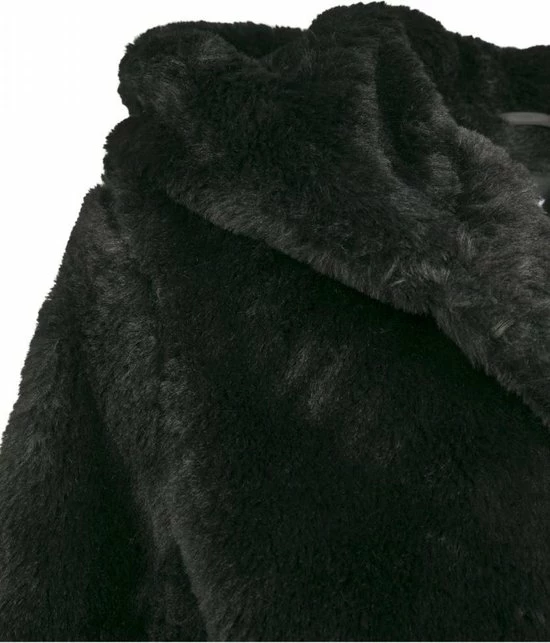 Een teddyjas met capuchon, zeer aangenaam met een extra knuffelfactor. Dit door het zachte (nep)konijnenbont en een voering van tafzijde aan de binnenkant. Stylistisch hoogtepunt is de XXL-capuchon. Handig en comfortabel zijn de twee warme zijzakken. Door de ingebouwde oogjes te gebruiken sluit je de jas met een zwaai van de pols.