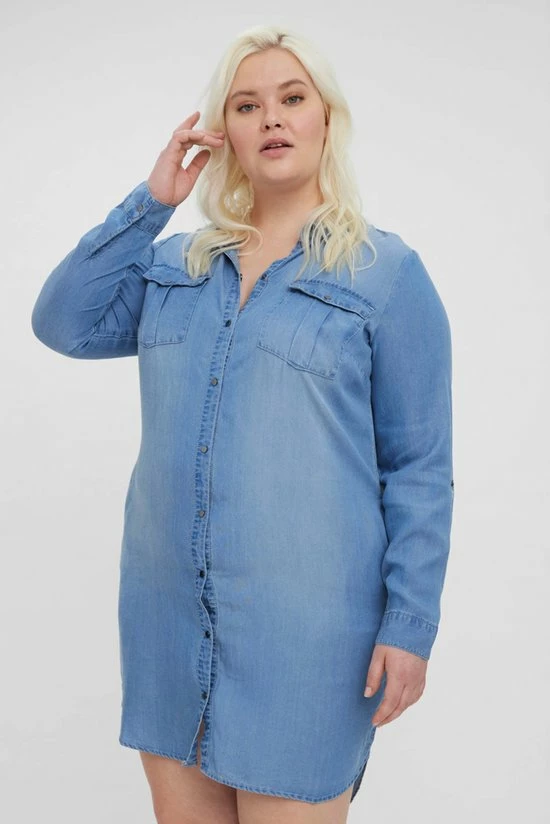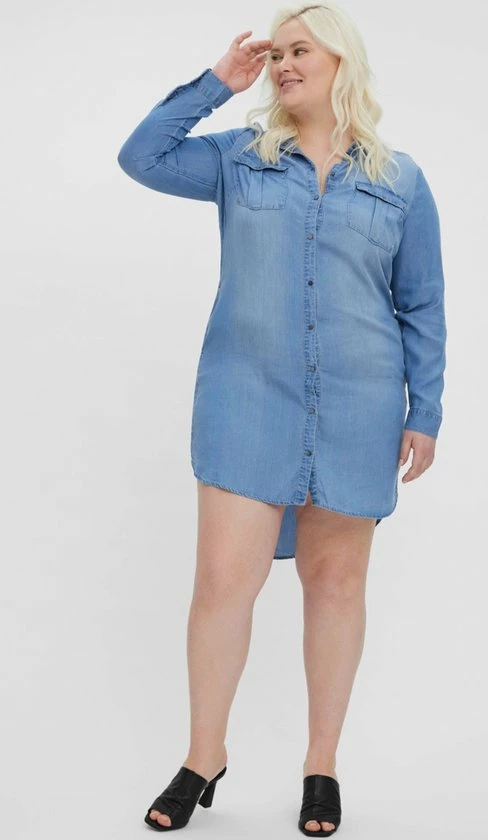 -Lange denim shirt dress van Vero Moda Curve.