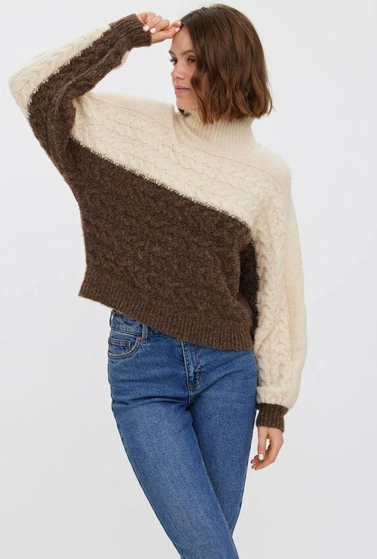 Beste Verkoop π Vero Moda Trui Vmsaga Ls High Neck Blouse Ga 10271471 Birch Aztec Me Dames Maat – M π