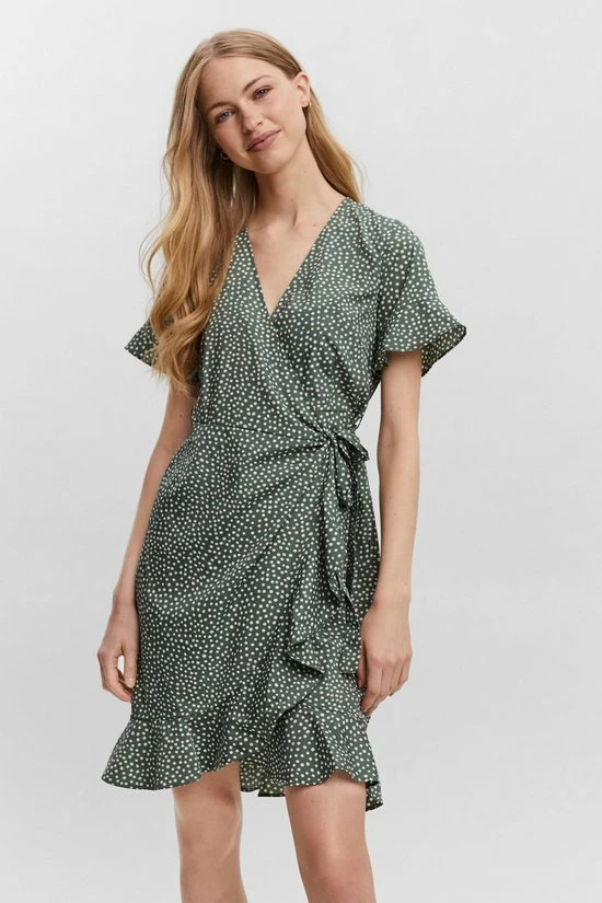 Promo π― VERO MODA VMHENNA 2/4 WRAP FRILL π DRESS NOOS – Laurel Wreath – Dames – Maat L π₯