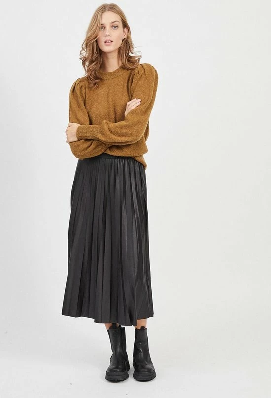 Deze plooirok van VILA heeft een knielengte en een elastieken tailleband.