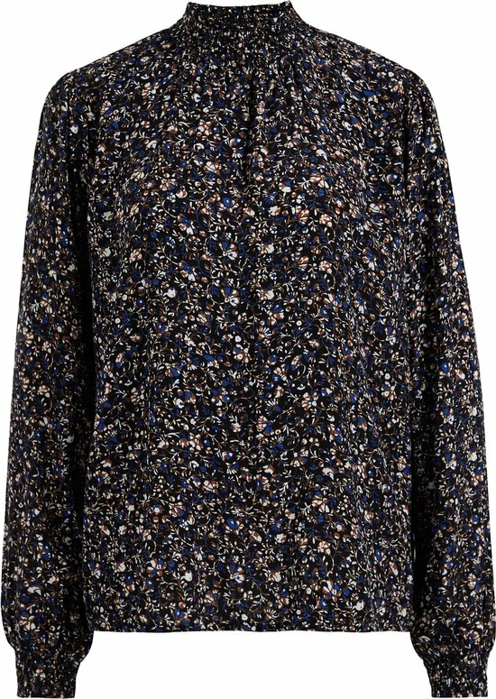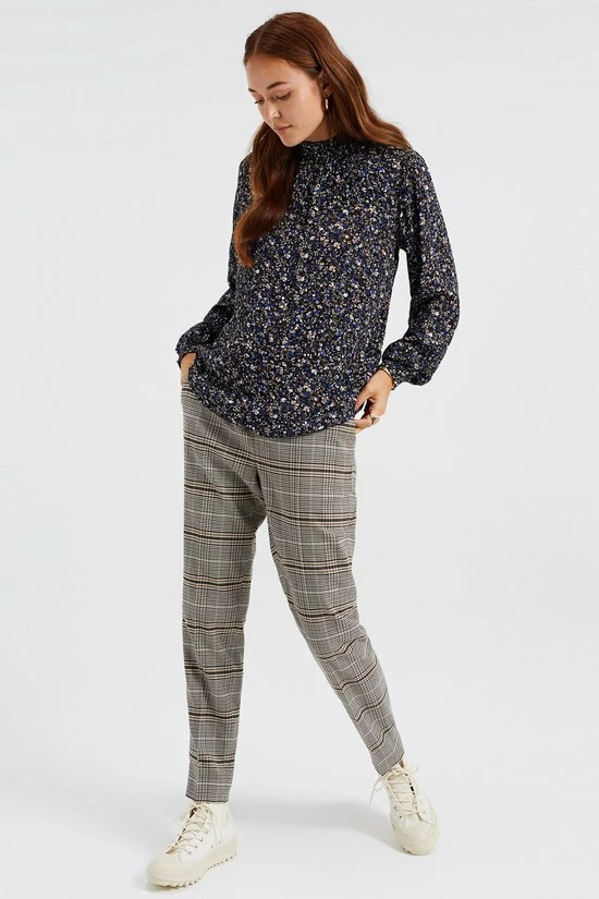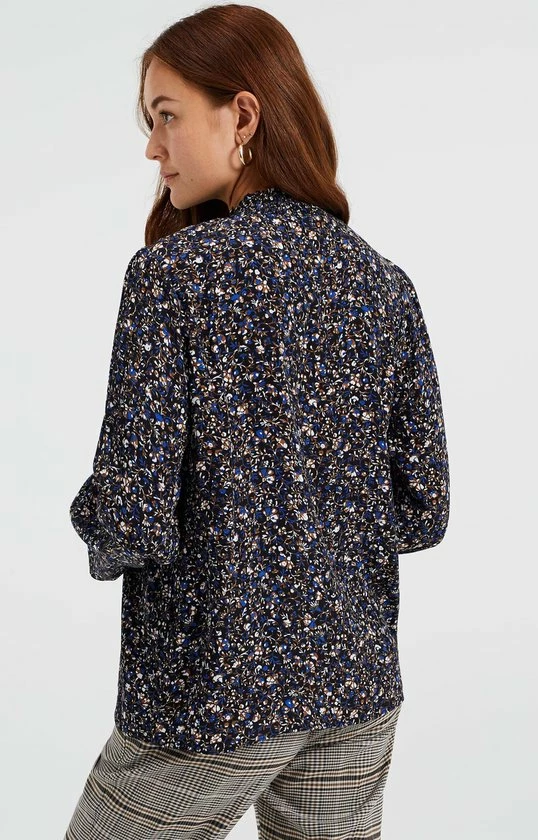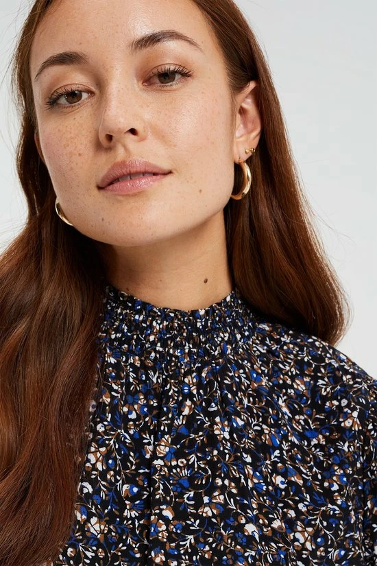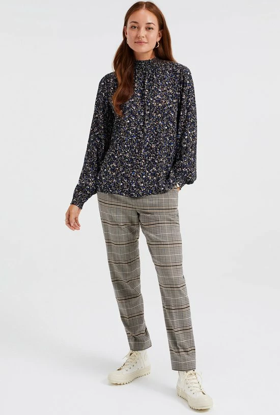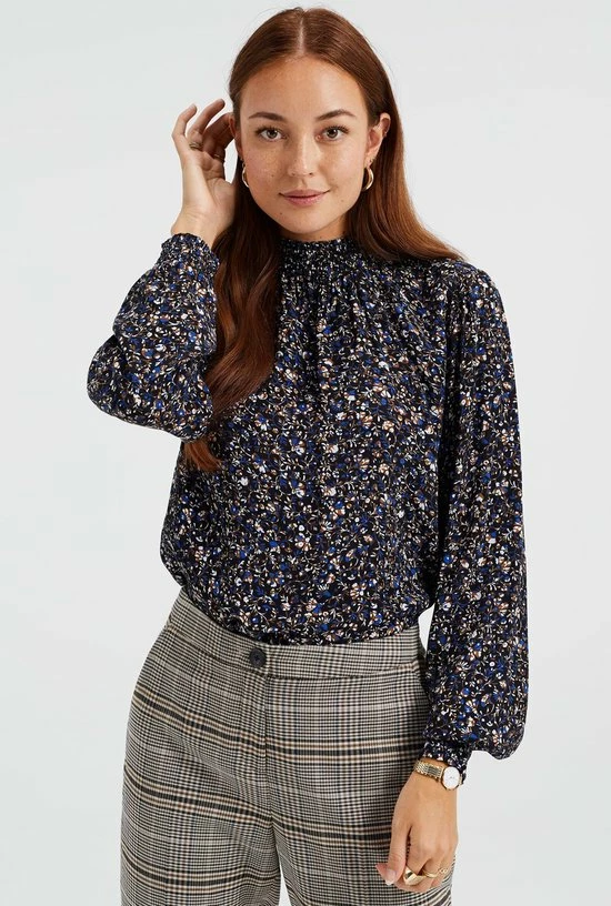 Een regular fit blouse van puur viscose met een dessin. Het model heeft een ronde hals en lange mouwen met gesmockte boorden.