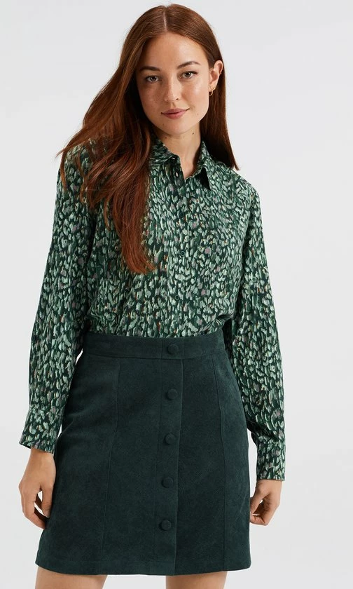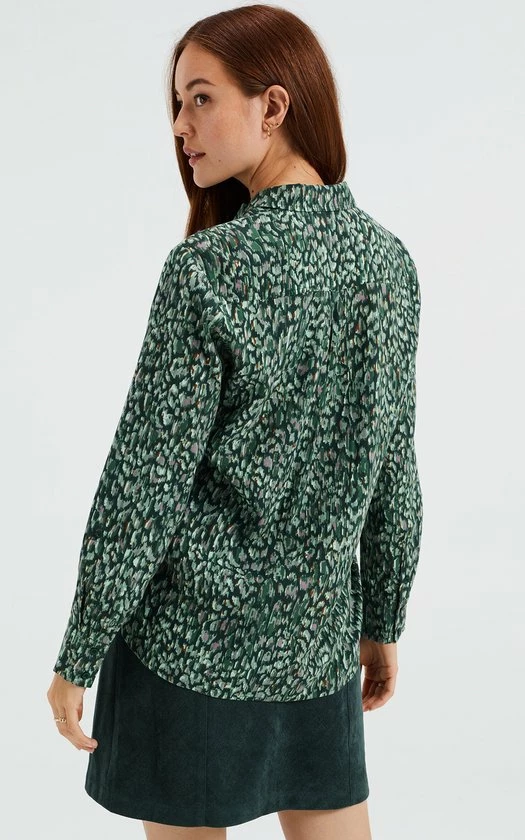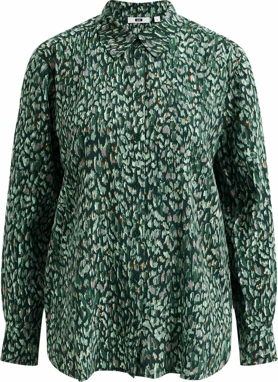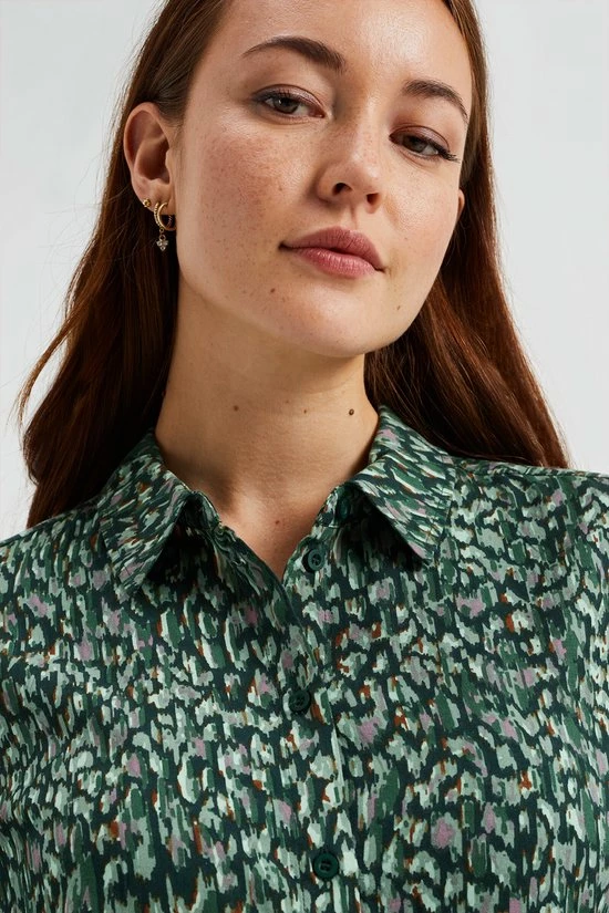 Een regular fit blouse van viscose met een dessin en een knoopsluiting. Het model heeft een normale kraag en lange mouwen.