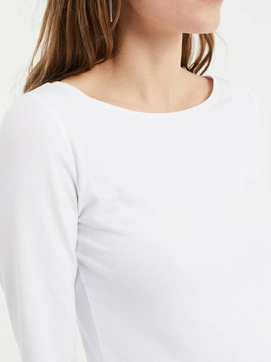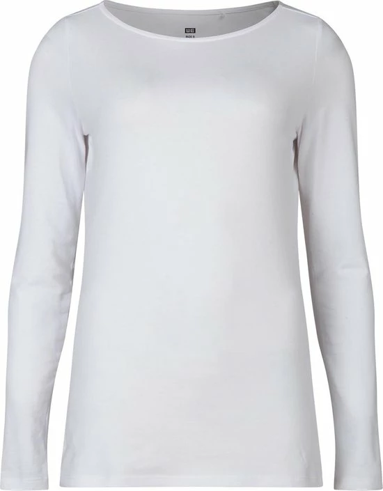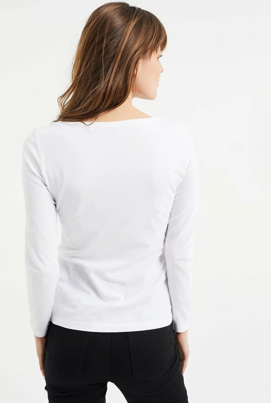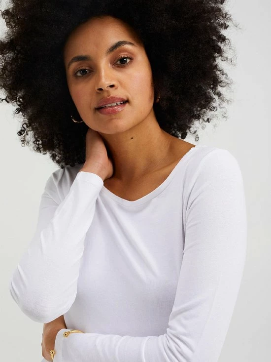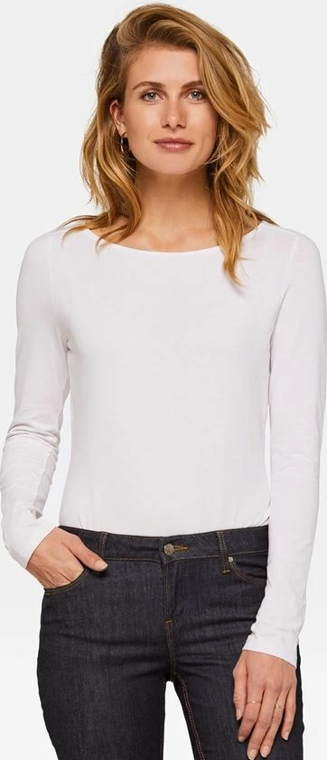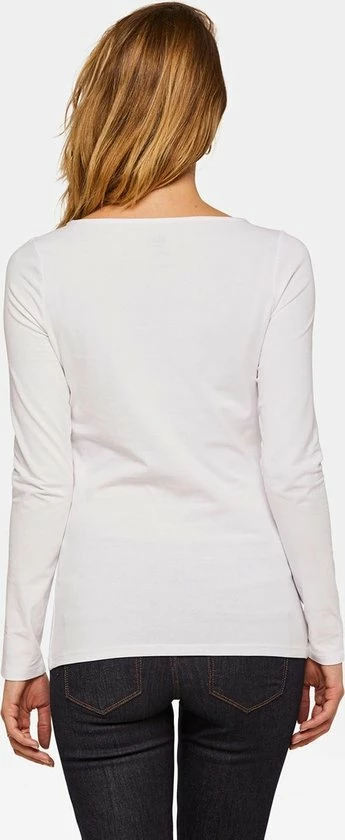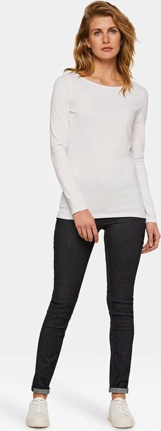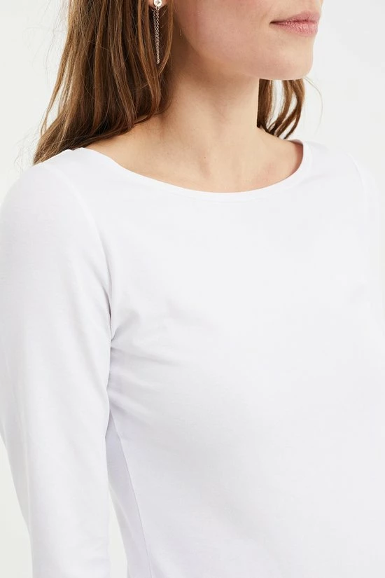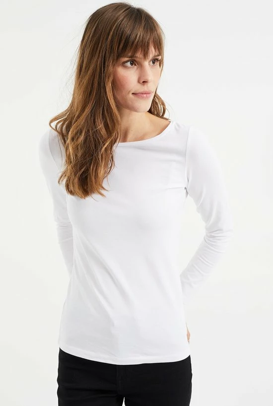 Nauwsluitend shirt van Biologische katoenmix met een boothals en lange mouwen. Let op: kleur grijs heeft een andere materiaal samenstelling nml 57% Biologisch Katoen, 38% Polyester & 5% Elastaan.