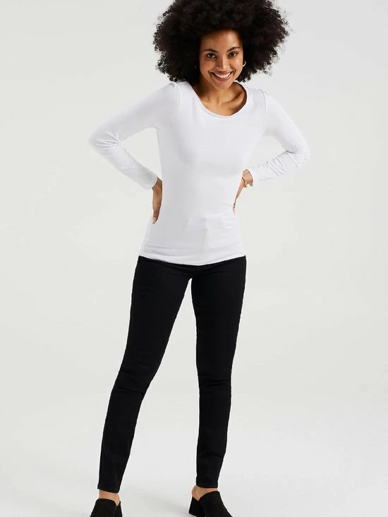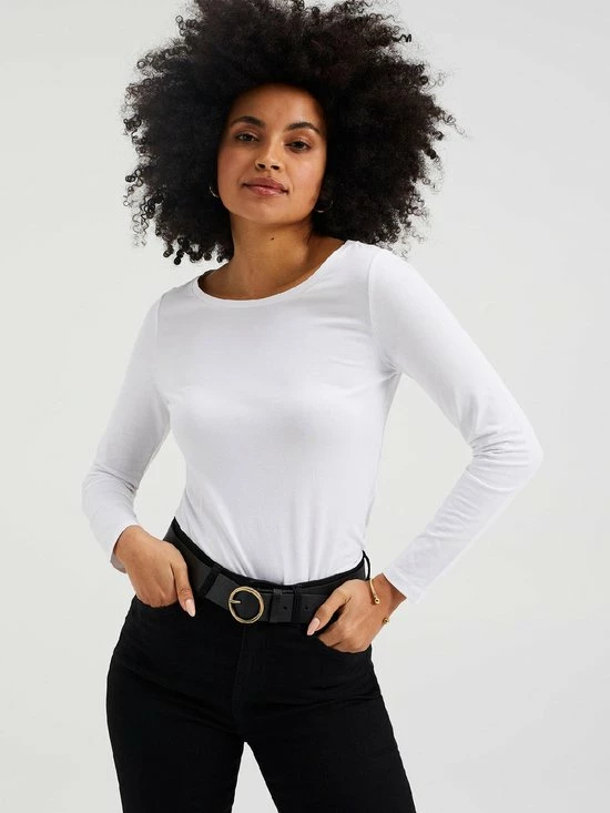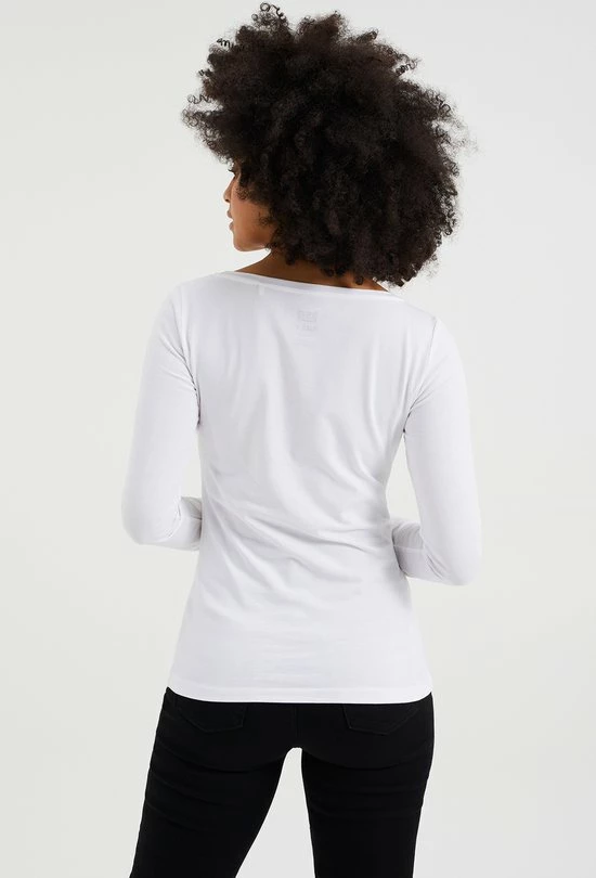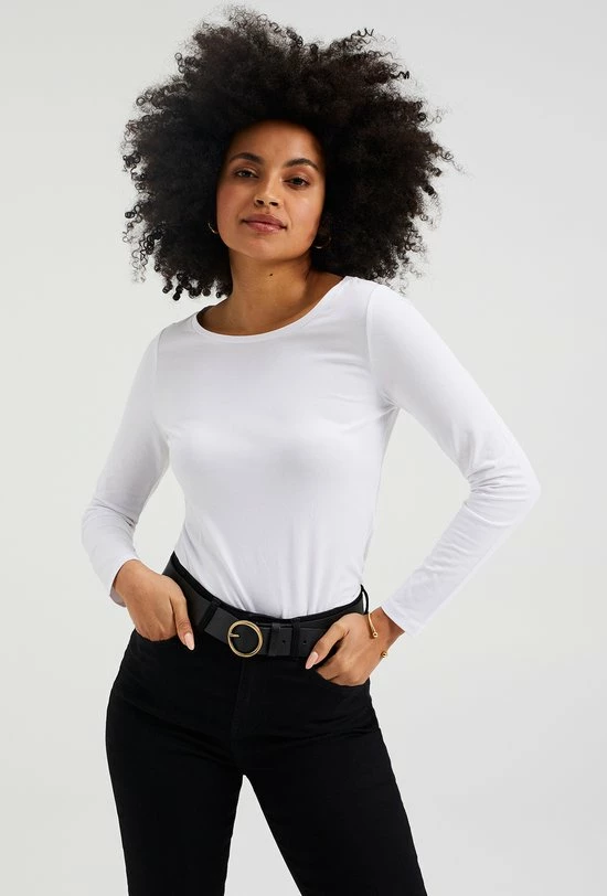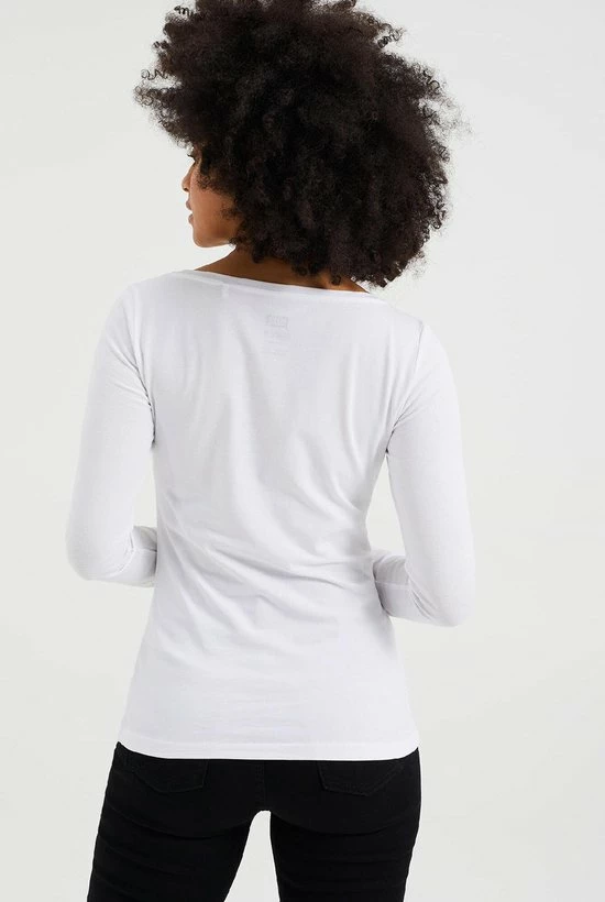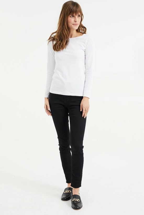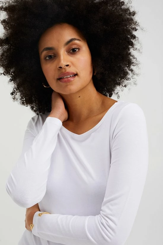 Nauwsluitend shirt van Biologische katoenmix met een boothals en lange mouwen. Let op: kleur grijs heeft een andere materiaal samenstelling nml 57% Biologisch Katoen, 38% Polyester & 5% Elastaan.