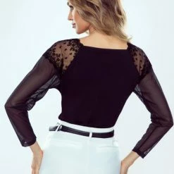 Nieuw 😀 Eldar Konstacja Stijlvolle Dames Blouse Met Kant Op De V- Hals En Mouwen Zwart,. M 🤩