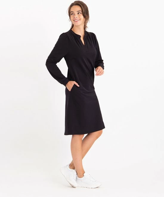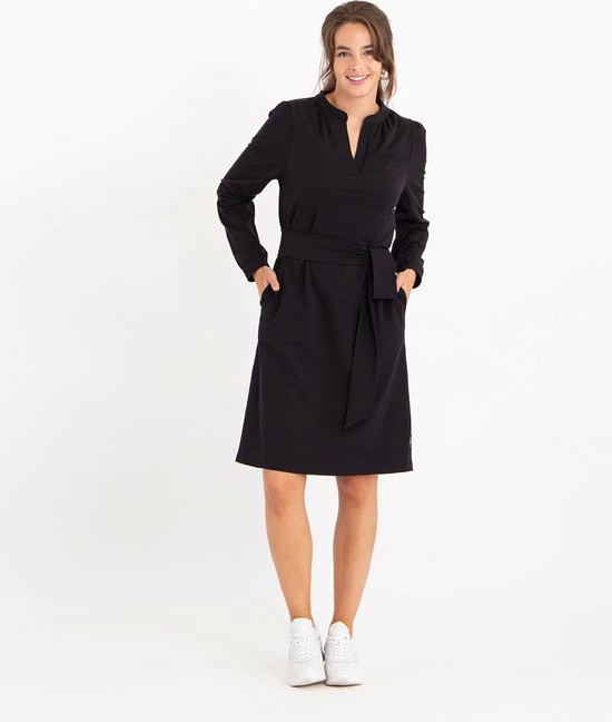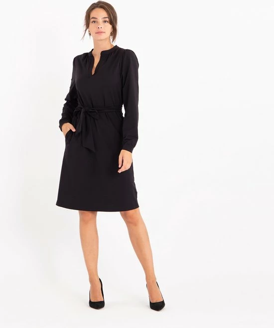 Ben je gek op kleding die fijn draagt, maar ook mooi blijft de hele dag? Dan is deze Travel kwaliteit jouw kwaliteit: Comfortabele stretch en veel draagcomfort! Lees hier alles () over Travel kwaliteit.โข Charmante jurk met mooie halslijn โข Lange mouw โข Met ceintuur welke naar wens wel/niet gedragen kan worden โข 2 steekzakjes aan de zijkantโข Licht getailleerd